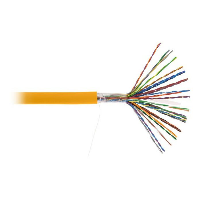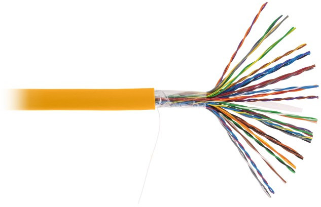 Многопарный кабель на основе витой пары, категории 5 применяется для организации магистральных кабельных сегментов со скоростью передачи данных до 100 Мбит/c. Также может быть использован для передачи аналоговой информации. Кабель EC-UU025-5-LSZH-OR-3 содержит 25 пар витых медных проводников, выполнен в неэкранированном исполнении, соответствует категории 5 и предназначен для внутренней прокладки. Поставляется на фанерных барабанах, по 305м.