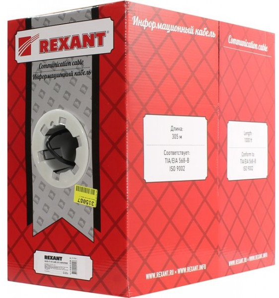 Наличие товара Кабель Rexant FTP 4 пары кат.5e бухта 305м для внешней прокладки [01-0146-1]