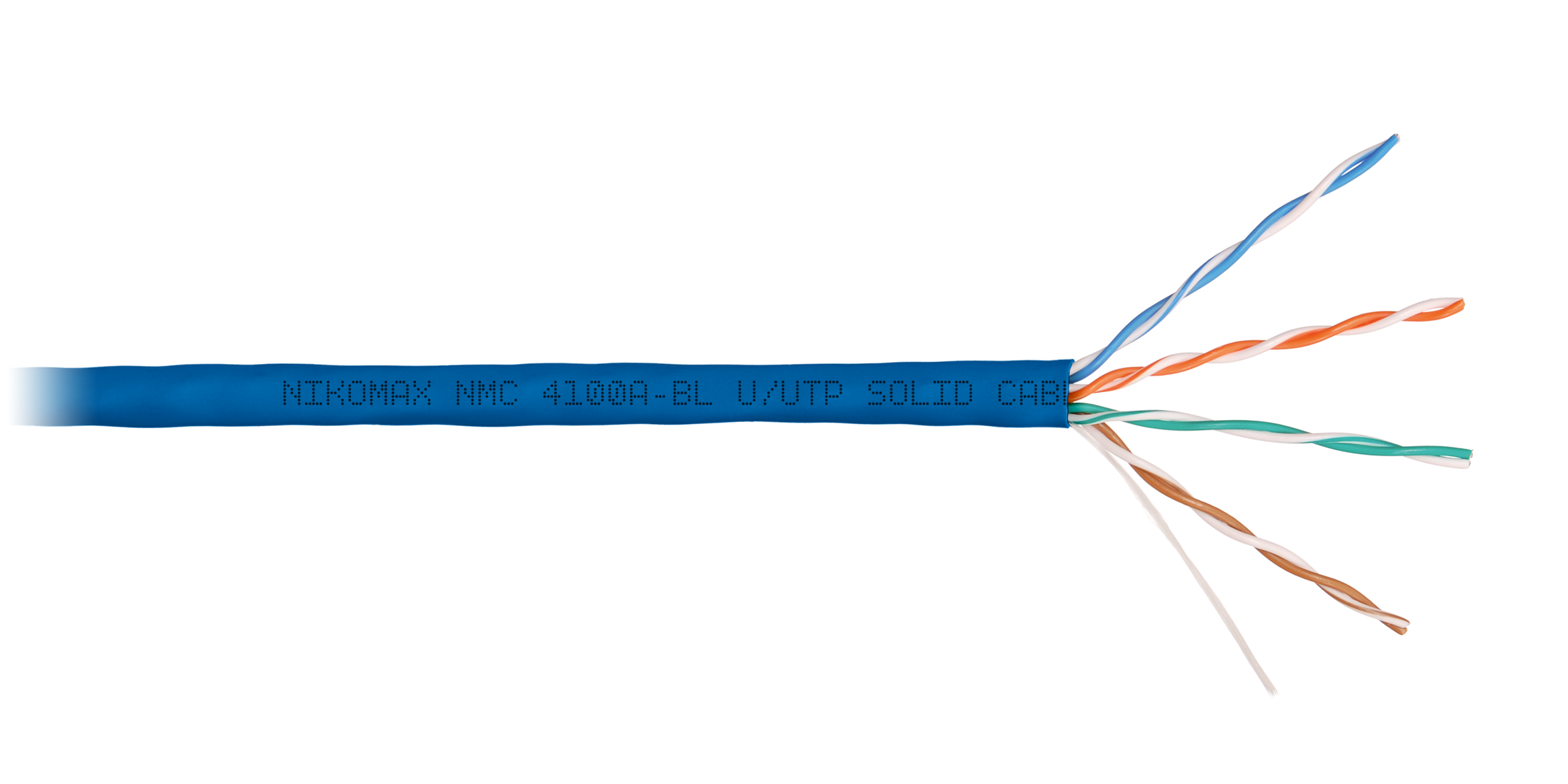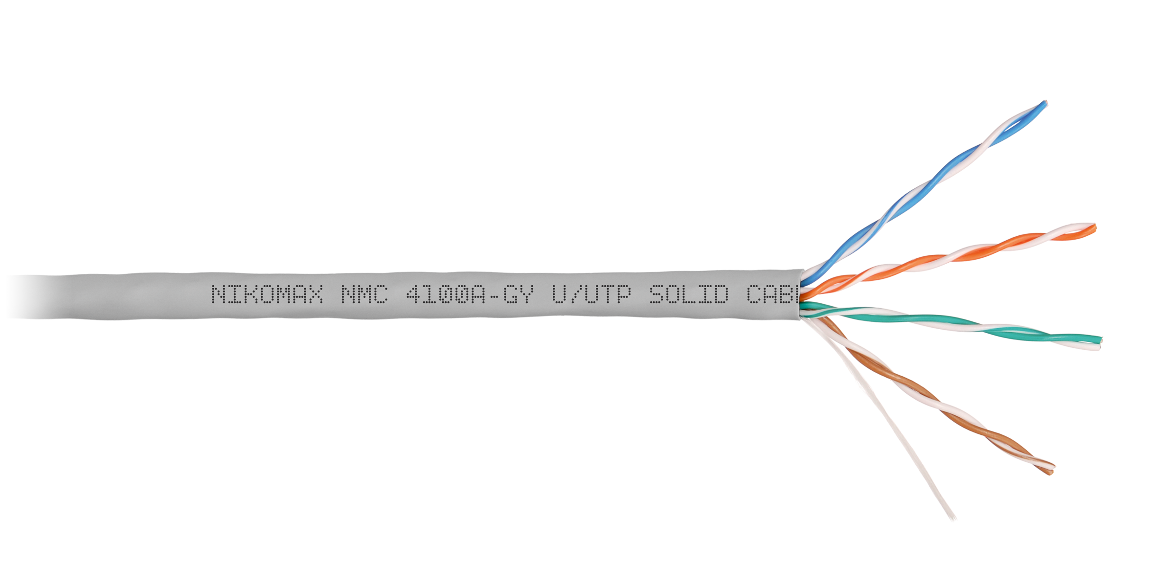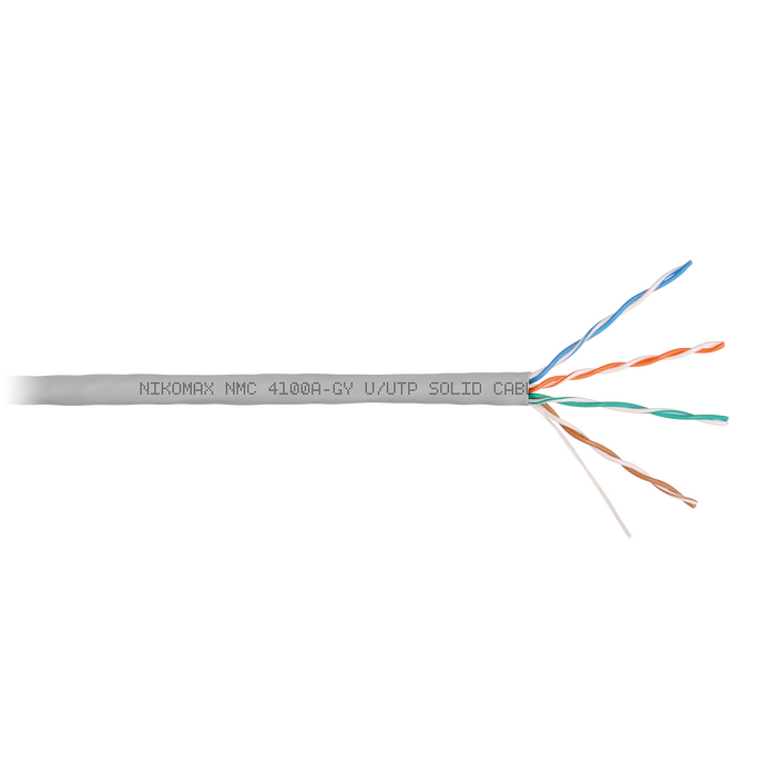 Кабель NMC 4100A-xx выполнен в неэкранированном исполнении U/UTP, соответствует категории 5e и предназначен для внутренней прокладки. Внешняя оболочка изготавливается из не распространяющего горение при одиночной прокладке, поливинилхлорида