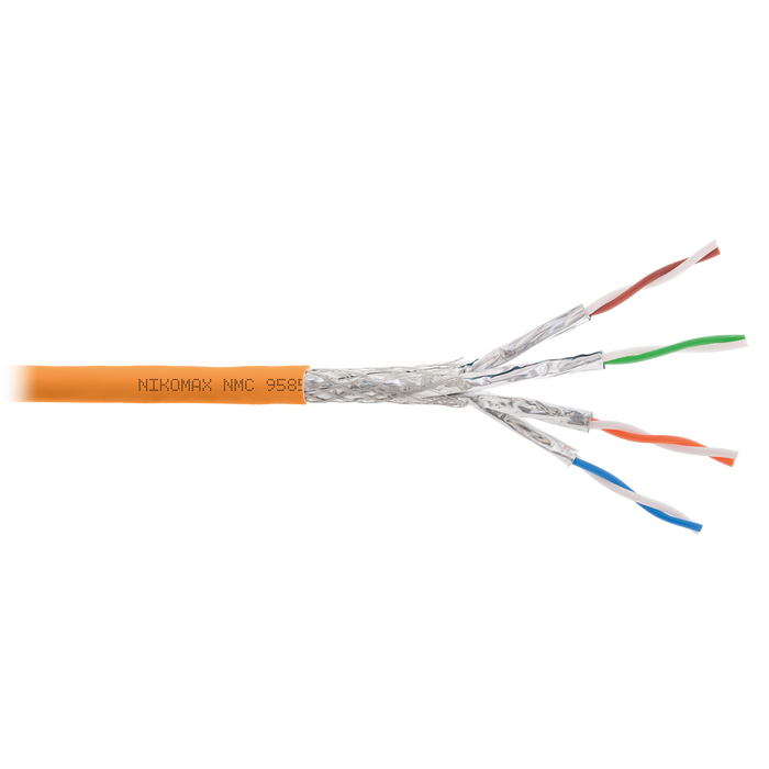 получает системную поддержку на 25 летКабель NMC 9585C-OR выполнен в экранированном исполнении S/FTP, соответствует категории 8 и предназначен для внутренней прокладки. Внешняя оболочка выполнена из не распространяющего горение при групповой прокладке и не выделяющего коррозионно-активных газообразных продуктов при горении и тлении, полимерного материала в исполнении нг(A)-HF.