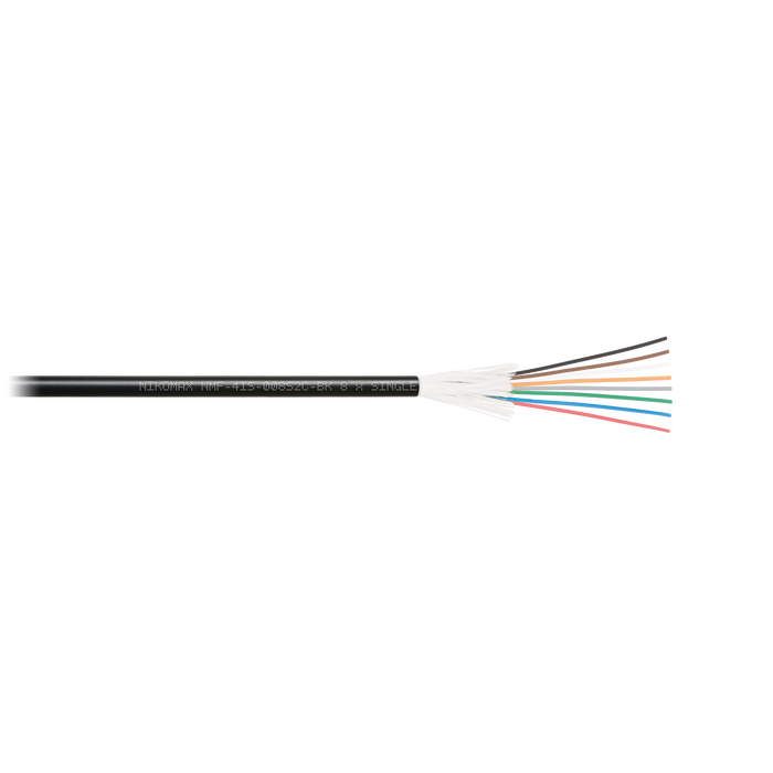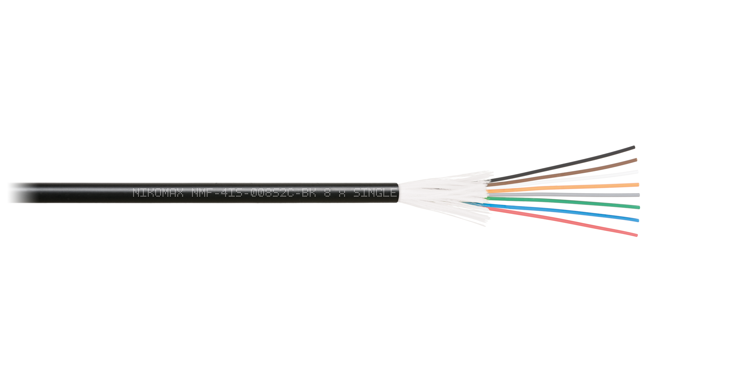 Кабели NMF-4IS-xxxS2C-BK предназначены для внутренней/внешней прокладки и содержат два, четыре, восемь, двенадцать, шестнадцать и двадцать четыре оптических волокон в плотном буфере, соответствующих стандартам ISO/IEC 11801 OS2 и ITU-T G.652.D. Поверх волокон накладываются стеклонити и внешняя оболочка. Внешняя оболочка выполнена из не распространяющего горение при групповой прокладке и не выделяющего коррозионно-активных газообразных продуктов при горении и тлении, устойчивого к воздействию ультрафиолетового излучения, полимерного материала в исполнении нг(A)-HF.