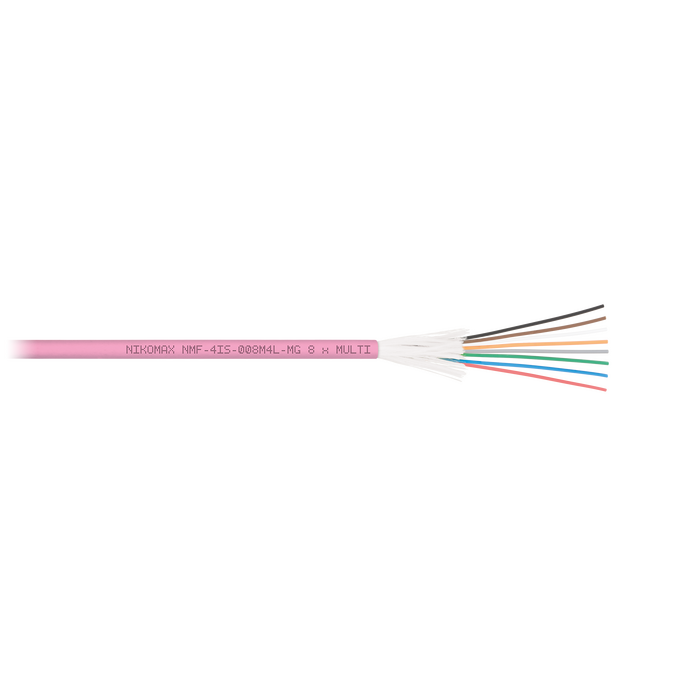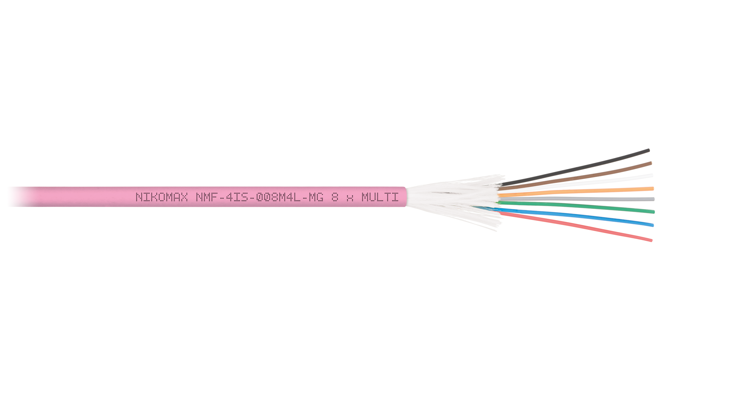 Кабели NMF-4IS-xxxM4L-MG предназначены для внутренней прокладки и содержат два, четыре, восемь, двенадцать, шестнадцать и двадцать четыре оптических волокон в плотном буфере, соответствующих стандартам ISO/IEC 11801 OM3. Поверх волокон накладываются стеклонити и внешняя оболочка. Внешняя оболочка выполнена из не распространяющие горение при групповой прокладке, с пониженным дымо- и газовыделением и с низкой токсичностью продуктов горения, полимерного материала в исполнении нг(A)-LSLTx.