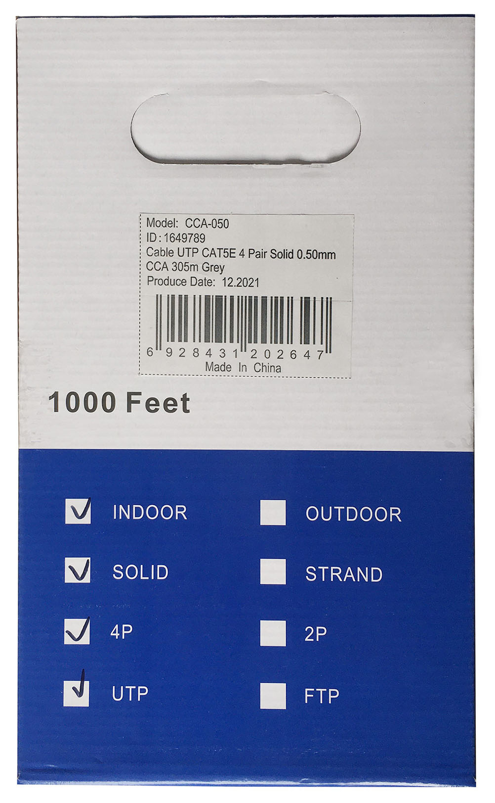 Описание Ningbo UTP 4 пары cat.5E solid 0.5мм CCA molded 305м серый