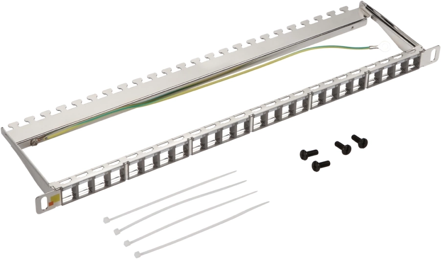 Коммутационная панель Nikomax NMC-RP24-BLANK-1U-MT 1U, наборная, под 24 модуля Keystone, UTP/STP, с заземлением, с органайзером, металлик