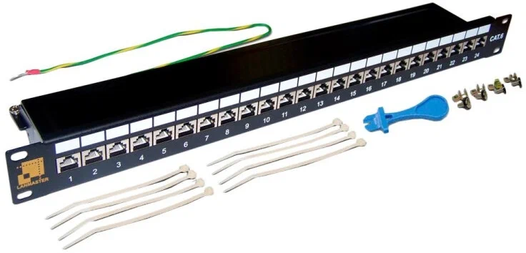 - Дополнительная информация: Соответствует требованиям категории 6А. Панель может монтироваться в 19-дюймовую стойку, шкаф или настенную раму, а также на стену.