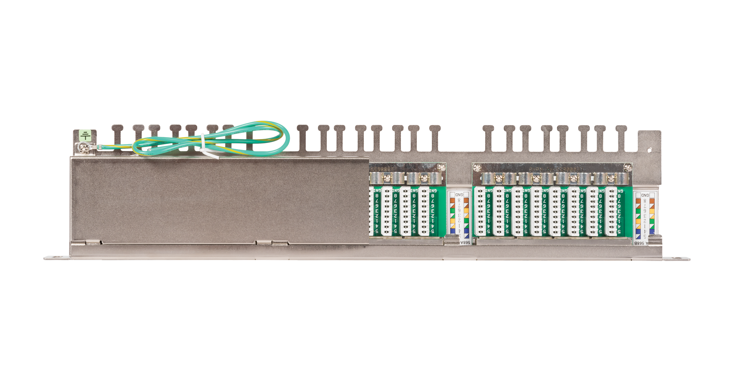 Такое решение идеально, когда необходимо обеспечить высокую плотность портов (например, в дата-центрах) или для расширения сети в ограниченном пространстве шкафа. Универсальные IDC контакты 110/KRONE расположены с тыльной стороны панелей, на горизонтальной подложке. Разводка кабелей на патч-панелях производится по двум стандартам: T568 А и B. Экраны кабелей попарно заземляются на винтовые клеммы.