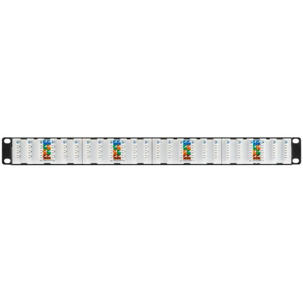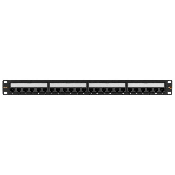 Коммутационные панели (патч-панели) предназначены для монтажа кабелей в различных подсистемах СКС и подключения отдельных составляющих сети друг к другу при помощи коммутационных шнуров. Неэкранированные патч-панели NIKOMAX выполнены в черном цвете и предназначены для монтажа в 19” шкаф или стойку. Панели NMC-RP24UA2-1U-BK (кат.6a) имеют стандартную высоту в 1U и вмещает 24 порта RJ45/8P8C. С тыльной стороны патч-панелей размещены контакты 110 типа с цветной маркировкой по двум стандартам: T568 А и B. Особый дизайн контактов также позволяет использовать для заделки кабелей ножи типа KRONE. Для удобства администрирования все порты пронумерованы, а также имеются дополнительные площадки для маркировки. В комплекты патч-панелей входят удобные съемные органайзеры для разводки входящих кабелей.