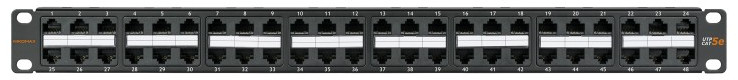 Коммутационные панели (патч-панели) предназначены для разделки в них кабелей различных подсистем СКС и подключения отдельных составляющих сети друг к другу коммутационными шнурами.Патч-панель высокой плотности NMC-RP48UD2-1U-BK выполнена в неэкранированном корпусе и предназначена для монтажа в 19" шкафы или стойки. Данная панель вмещает 48 портов RJ45/8P8C при высоте в 1U. Такое решение идеально, когда необходимо обеспечить высокую плотность портов (например, в дата-центрах) или для расширения сети в ограниченном пространстве шкафа. С тыльной стороны патч-панелей размещены контакты 110 типа с цветной маркировкой по двум стандартам: T568А и T568B. Особый дизайн контактов также позволяет использовать для заделки кабелей ножи типа KRONE. Для удобства администрирования все порты пронумерованы, а также имеются дополнительные площадки для маркировки. Для защиты кабельных соединений и IDC контактов в комплект входят защитные крышки. Предусмотрен съемный органайзер для надежного закрепления кабелей.