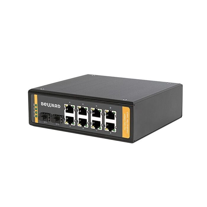 Коммутатор промышленного класса STP-0802HPv2 оснащён восемью портами RJ-45 с поддержкой питания сетевых устройств по технологии High PoE в соответствии со спецификацией стандарта IEEE 802.3af/at. К коммутатору можно подключить оптоволоконную линию связи через один из двух портов SFP. Возможно задействовать оба SFP порта для построения сети по топологии шина или получения отказоустойчивой линии связи. Все порты коммутатора являются независимыми и работают на скорости 1000 Мбит/с.