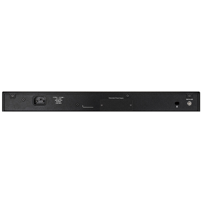 | Особенности | Стекируемый коммутатор. Два консольных порта - RJ45 и Mini-USB. Порт управления RJ45 (Out-of-band) и сигнальный порт RJ45. Разъем для резервного источника питания DPS-700 (приобретается отдельно) |
