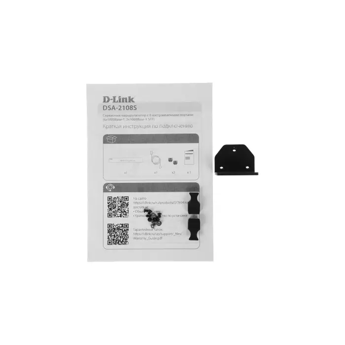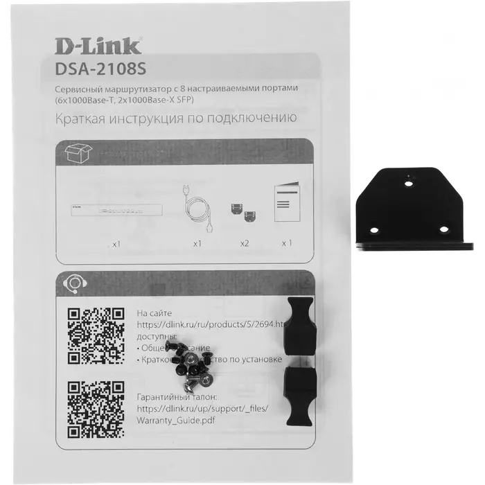| Комплектация | Маршрутизатор DSA-2108S, кабель питания, 2 крепежных кронштейна для установки в 19-дюймовую стойку, документ «Краткое руководство по установке» (буклет). |