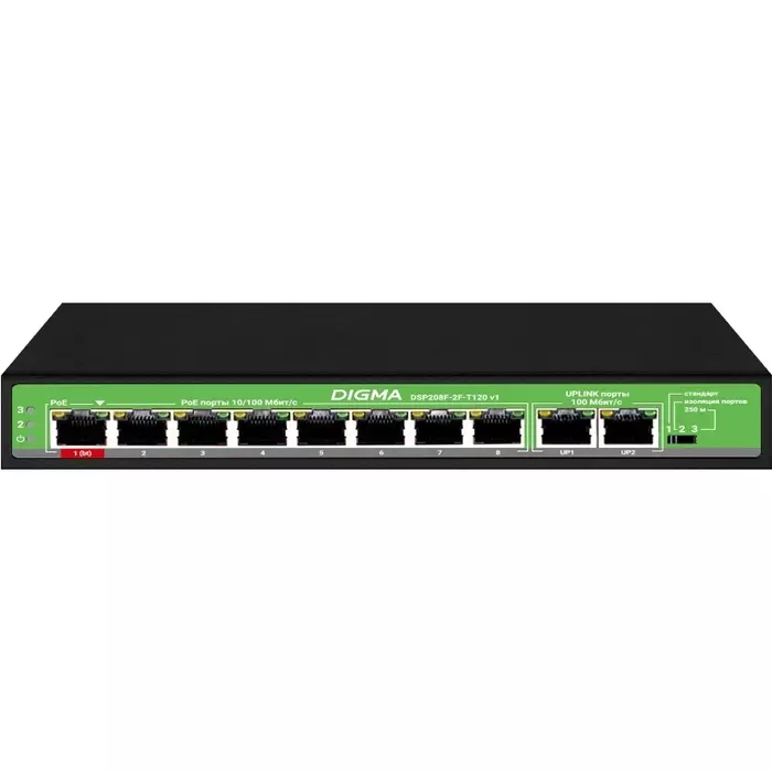 | Особенности | 1 порт подерживает питание стандарта 802.3af/at/bt (до 90Вт), 2-8 порт поддерживают питание стандарта 802.3af/at, выводы питания 1/2+,3/6- |