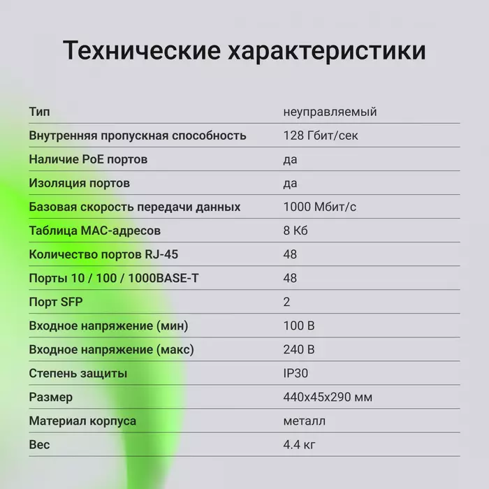 | Порты 10 / 100 / 1000BASE-T | 48 |