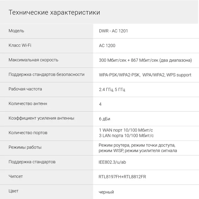 | Класс Wi-Fi | AC1200 |