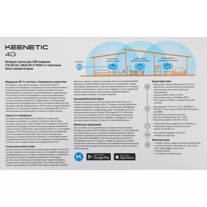 | Особенности | Облачная система удаленного мониторинга и управления, Мобильное приложение для Android и iOS, Командная строка (CLI) по TELNET/SSH, ADSL2+/VDSL2 через Keenetic Plus DSL |