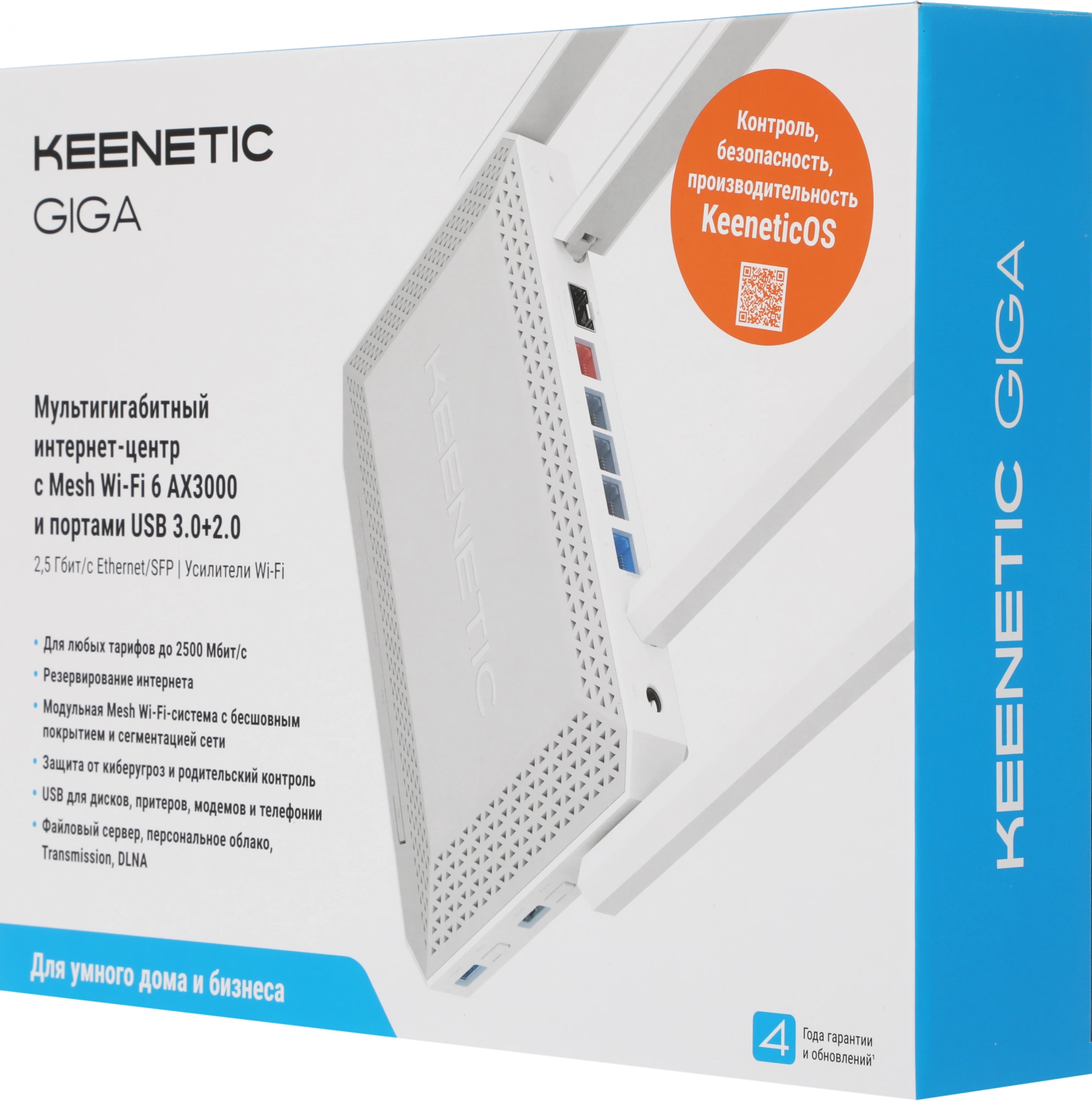 Мультигигабитный интернет-центр с Mesh Wi-Fi 6 AX3000, Smart-коммутатором с 4 портами Gigabit Ethernet и 1 портом 2,5 Gigabit Ethernet, комбо-портом SFP, портами USB 3.0 и 2.0.