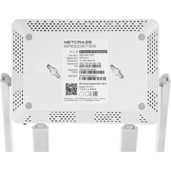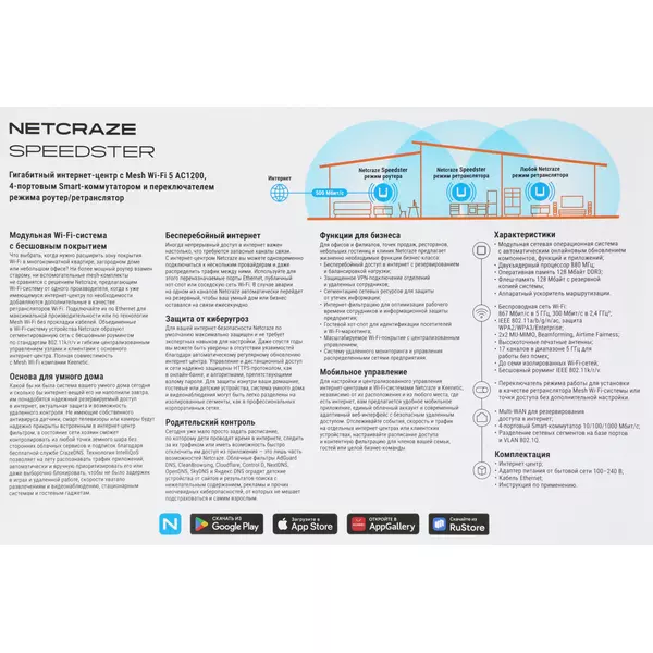 | Комплектация | Роутер беспроводной Keenetic Netcraze Speedster, адаптер питания: 12 В 1 A; кабель Ethernet; инструкция по применению. |