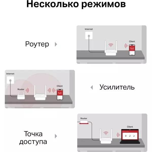 | Особенности | Режимы рабoты: роутер, точка доступа, усилитель сигнала. |