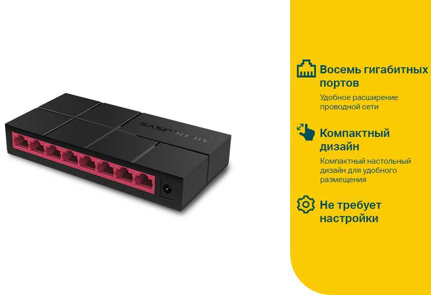 - Порты 10 / 100 / 1000BASE-T: 8
