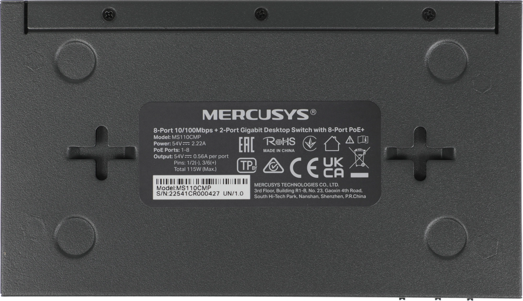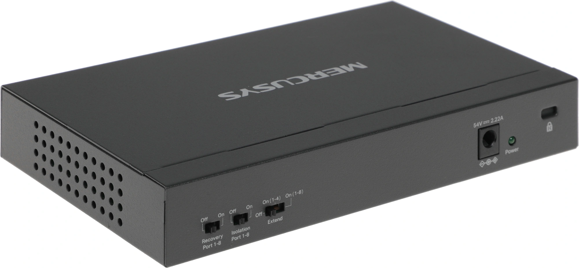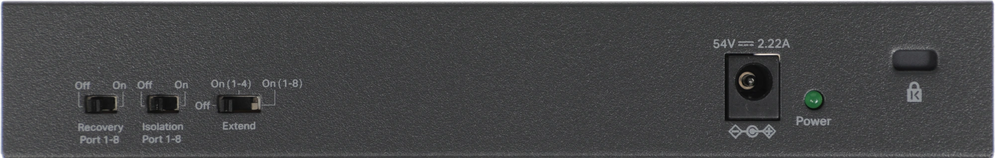 | Особенности | 10 портов: 8 портов PoE+ 10/100 Мбит/c и 2 гигабитных порта без PoE. |