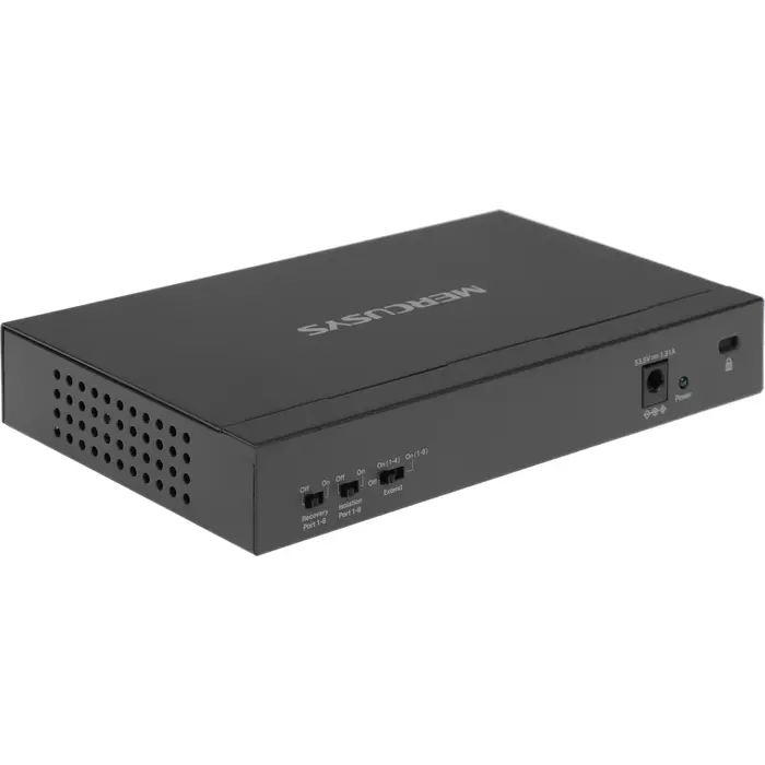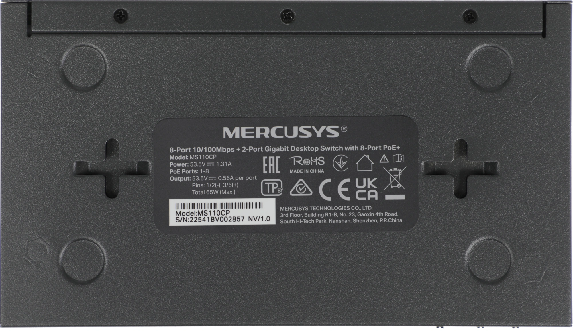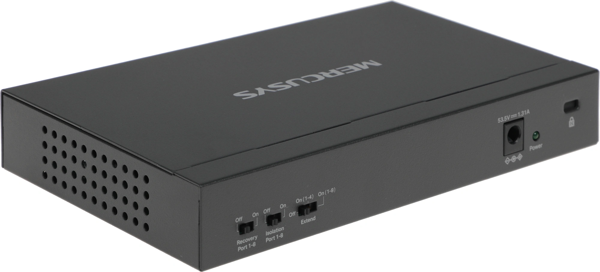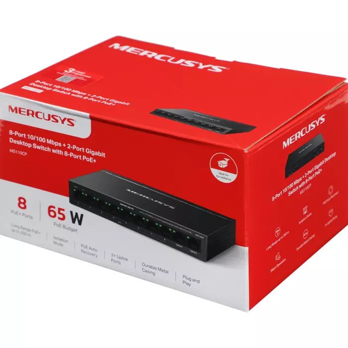 | Особенности | 10 портов: 8 портов PoE+ 10/100 Мбит/c и 2 гигабитных порта без PoE |