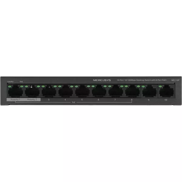 Коммутатор Mercusys MS110P (L2) 10x100Мбит/с 8PoE+ 65W неуправляемый