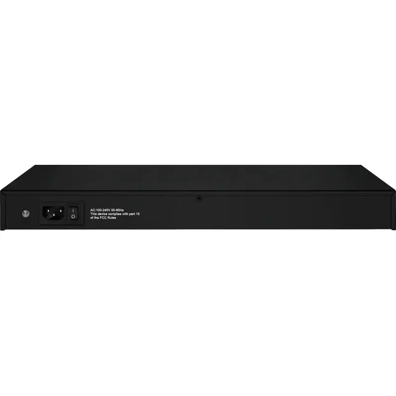 - Порты: 24 x FE (10/100 Base-T) с поддержкой PoE (IEEE 802.3af/at), 4 x GE Combo Uplink (RJ45 + SFP)