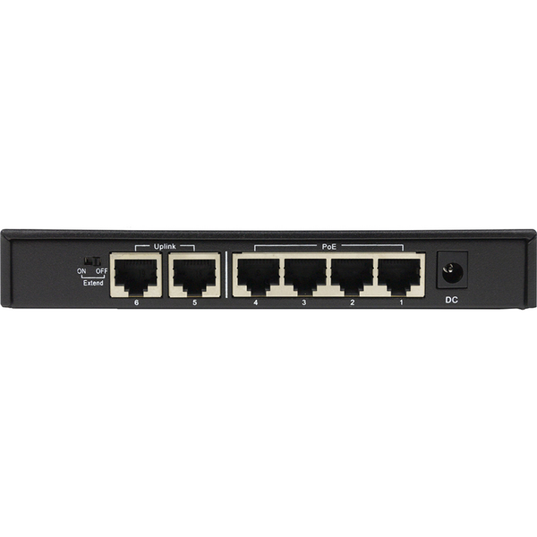 Коммутатор обеспечивает подачу питания до 30 Вт на порт. Максимальный PoE-бюджет на 4 порта составляет 100 Вт, номинальный – 60 Вт. Режим Extend PoE позволяет увеличить дальность передачи данных и питания до 250 м и изолировать трафик PoE-портов с помощью функции VLAN Isolation.