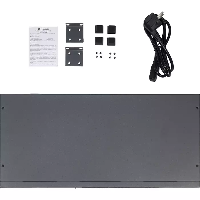 | Комплектация | Коммутатор OS2218FP/200W, кабель питания, комплект для установки в 19-дюймовую стойку, винты, резиновые ножки, краткое руководство по установке |