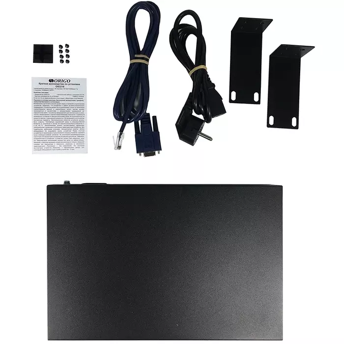 | Комплектация | Коммутатор OS3218, кабель питания, консольный кабель с разъемом RJ-45, комплект для установки в 19-дюймовую стойку, краткое руководство по установке. |