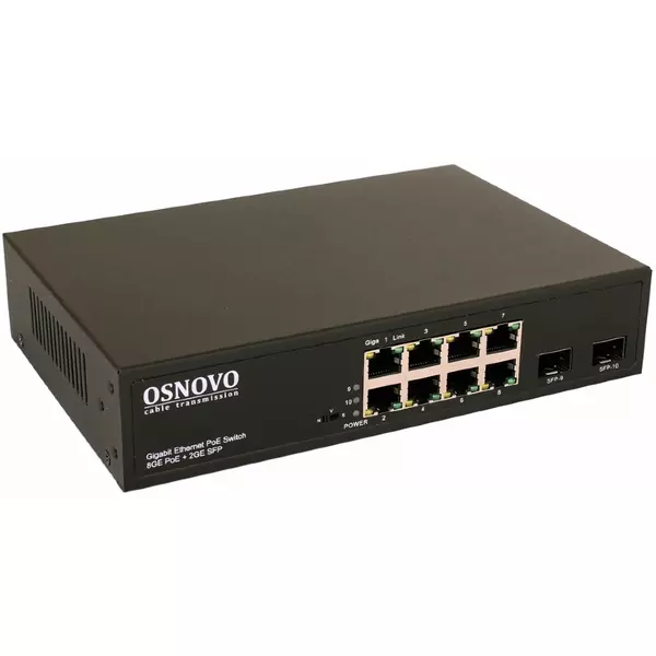 | Особенности | PoE коммутатор Gigabit Ethernet SW-80802(150W) на 8 GE RJ45 + 2 GE SFP порта (далее по тексту – коммутатор) предназначен для передачи данных между сетевыми устройствами и подачи питания к ним по кабелю витой пары по технологии PoE (Power Over Ethernet) на расстояние до 100м. |