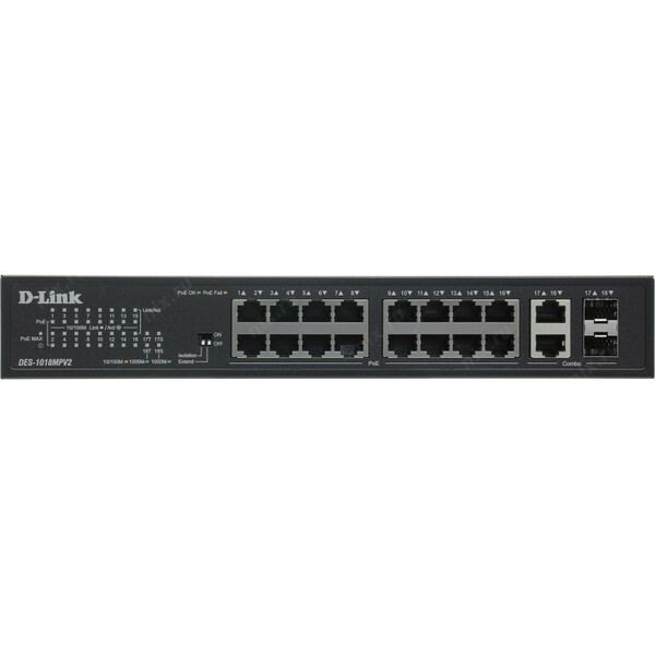 Неуправляемый коммутатор D-link DES-1018MPV2 /A1A 16UTP 100Mbps PoE + 2Combo 1000BASE-T/SFP