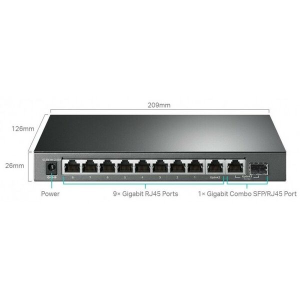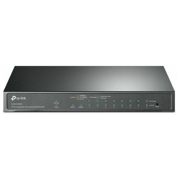 - Гигабитные порты: 9 портов 10/100/1000 Мбит/сек, 8 из них PoE+, 1 из них разделяемый с SFP