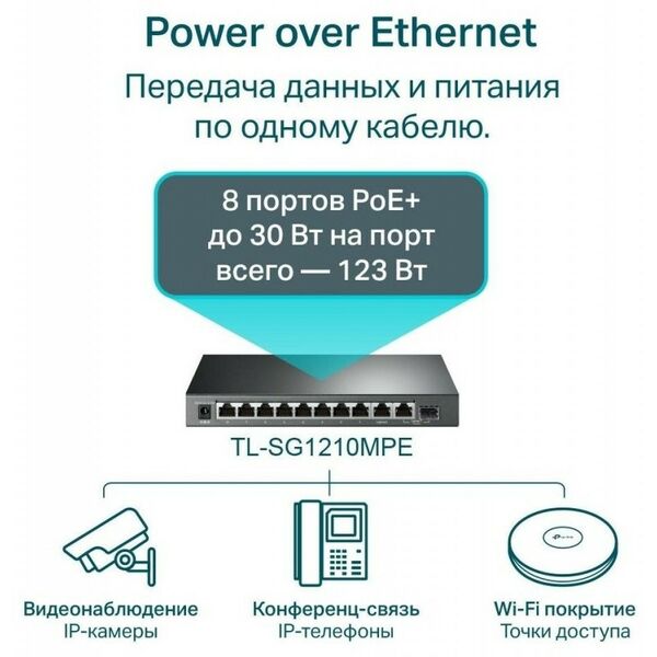 - Максимальная мощность на 1 порт PoE: 30 Вт