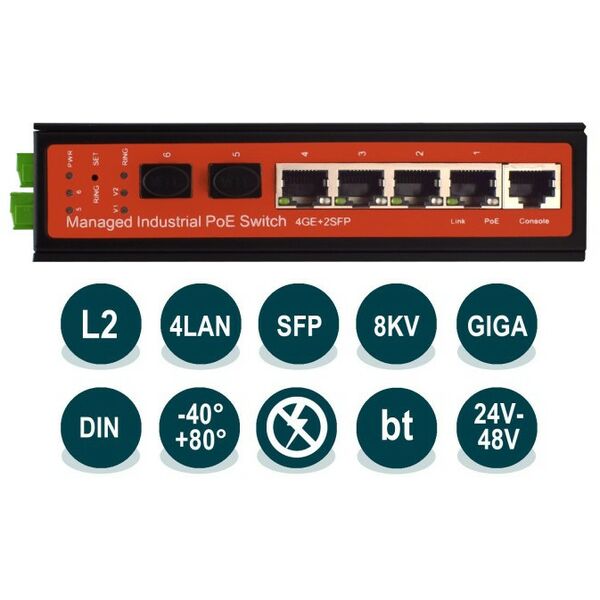 - Промышленный управляемый L2 коммутатор WI-PMS306GF-I предназначен для применения в индустриальных сетях предприятий. Коммутатор оснащен 4 портами 10/100/1000Base-Т с поддержкой PoE различных стандартов 802.3at/af/bt, Passive PoE 24В/48В и 2 портами SFP, сухими контактами, температурным датчиком, защищен от грязи, устойчив к электромагнитным помехам, нестабильному входному напряжению и сложным климатическим условиям.