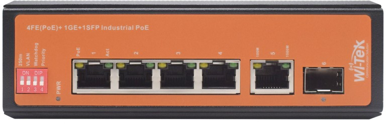 - Промышленный неуправляемый коммутатор WI-PS206GF-I предназначен для применения в индустриальных сетях предприятий. Коммутатор оснащен 4 портами 10/100Base-Т с поддержкой PoE 802.3at/af, 1 портом 1000Base-T, 1 портом 1000Base-X SFP. Защищен от грязи, пыли и влаги, устойчив к электромагнитным помехам, нестабильному входному напряжению и сложным климатическим условиям.