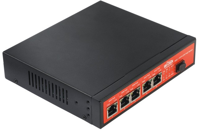 Коммутатор оснащен 5 портами PoE: