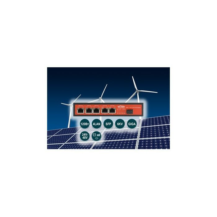 - Неуправляемый гигабитный коммутатор WI-PS306GF-UPS с питанием от солнечной панели и аккумуляторной батареи, с функцией PoE (Power over Ethernet), предназначен для инсталляций на объектах, удаленных от электропитания либо с жесткими требованиями по резервированию питания.