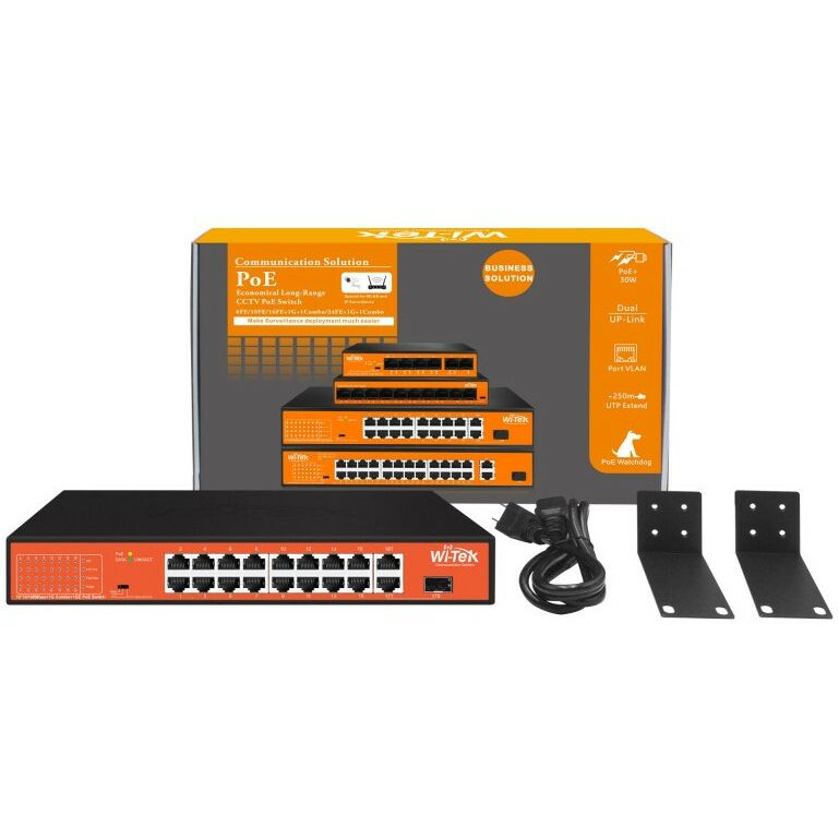 - Коммутатор поддерживает режим работы CCTV, VLAN и функцию Watchdog