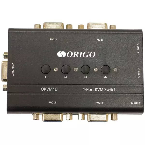 | Особенности | Управление 4 ПК с портами USB и VGA. Выбор ПК с помощью кнопок на корпусе и горячих клавиш. USB 2.0 для совместного использования USB-накопителя. Поддержка Windows, Mac и Linux. Режим автосканирования. 2 KVM-кабеля в комплекте. Питание от шины USB. Совместимость: кабели OKVMCU, OKVMCU3, OKVMCU5 |