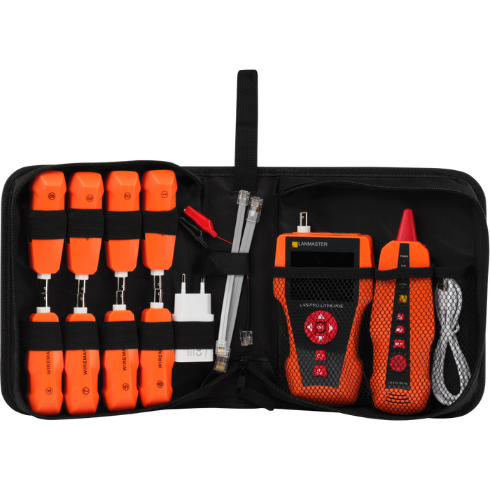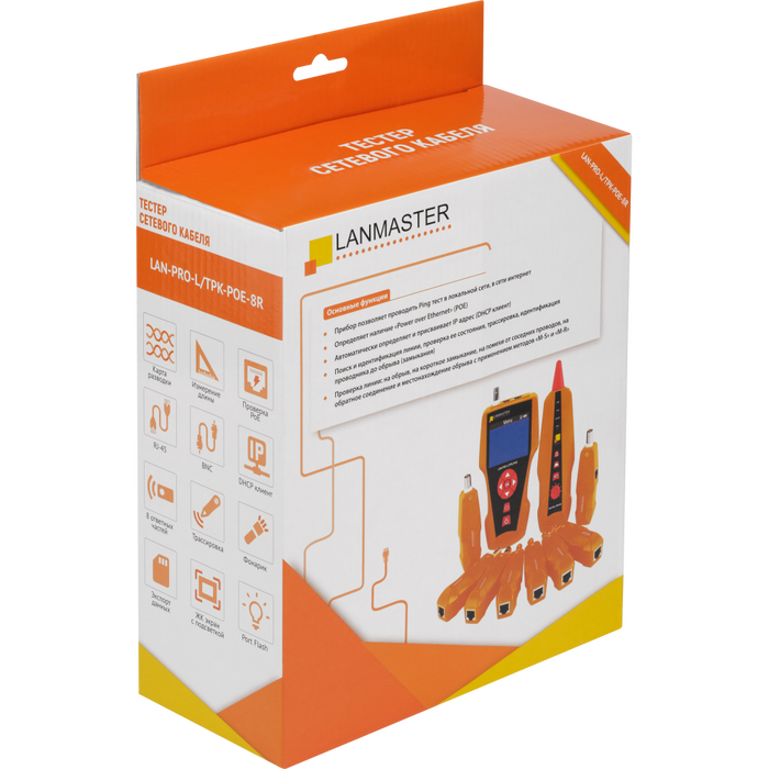 Тестер кабельный Lanmaster LAN-PRO-L/TPK-POE-8R оранжевый/черный