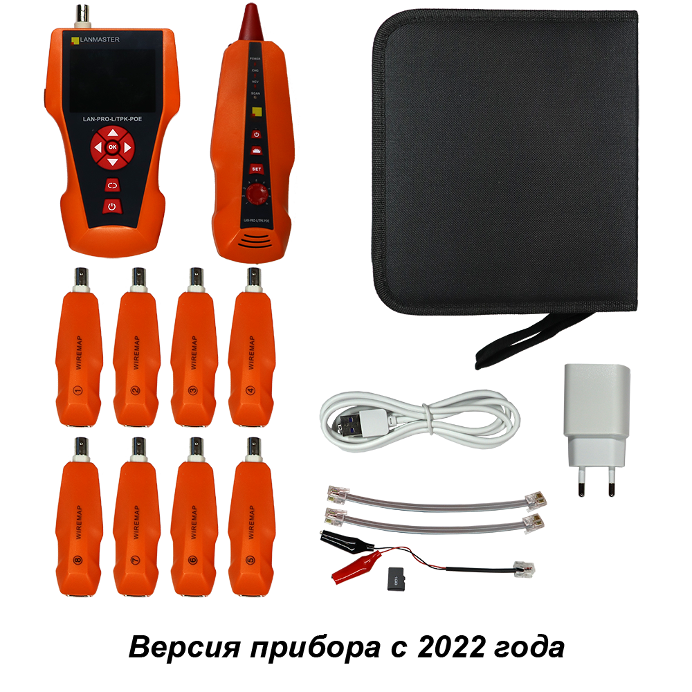 | Комплект поставки | Главный блок, индуктивный щуп, ответная часть - 8 шт., USB micro шнур, зарядное устройство, кабель RJ45, кабель RJ11, кабель RJ11 - крокодилы, карта памяти, сумка-чехол на ремне, инструкция по эксплуатации. |