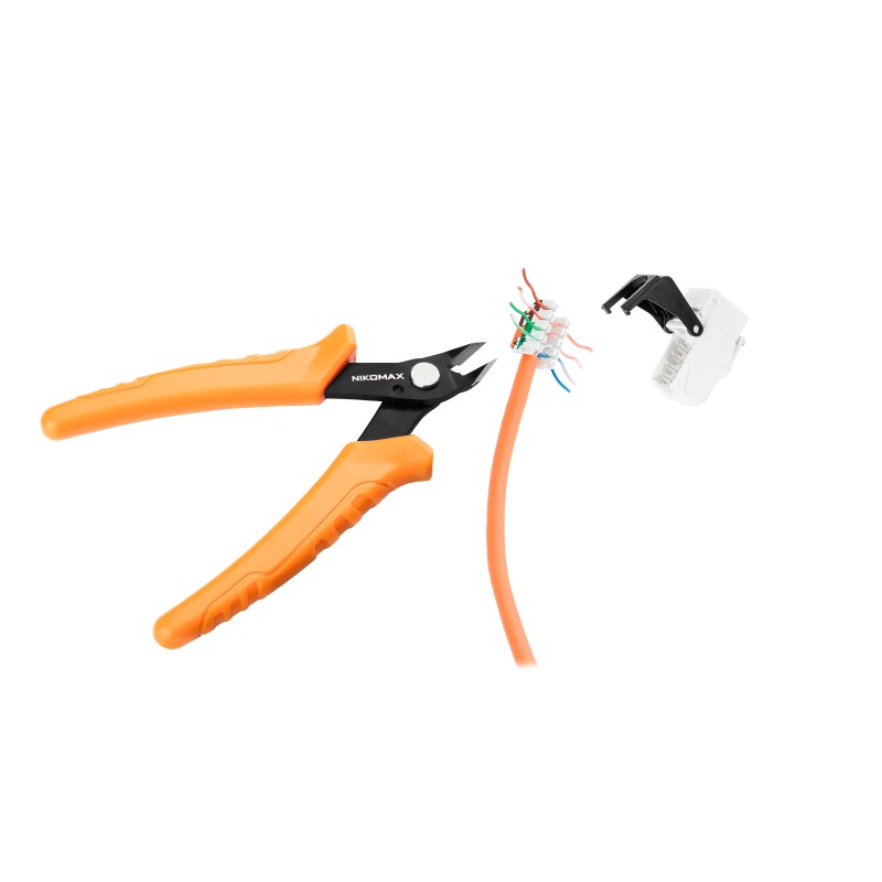 Боковые кусачки NMC-222 предназначены для точной обрезки жил проводов и других тонких электромонтажных работ. Длина режущей кромки кусачек – 10 мм. Подходят для жил из меди и других мягких металлов толщиной до 1 мм (18AWG). Не предназначены для стали. При работе с кабельными системами, кусачки незаменимы для заделки самозажимных модулей. Закаленные, точно подогнанные лезвия обеспечат ровный срез, вплотную к поверхности вставки. Боковые кусачки также будут полезны и для разделки кабелей сложной конструкции: для удаления экранов, пленок, разрывных нитей и разделительной крестовины кабелей 6-й категории.