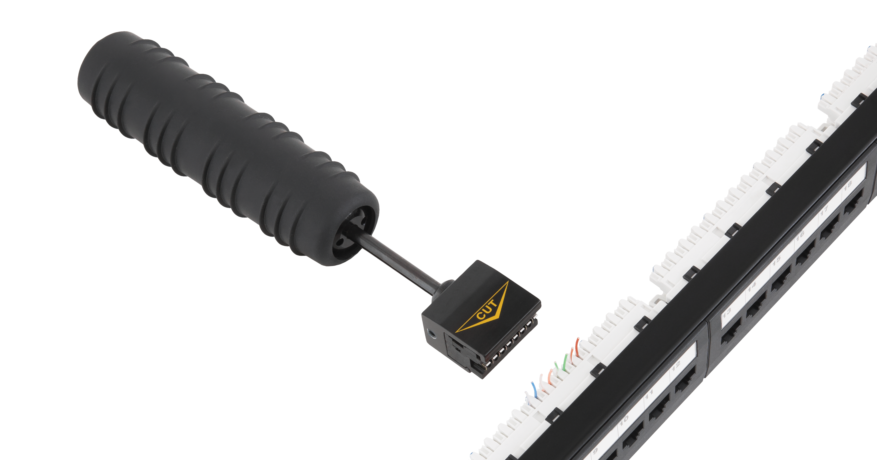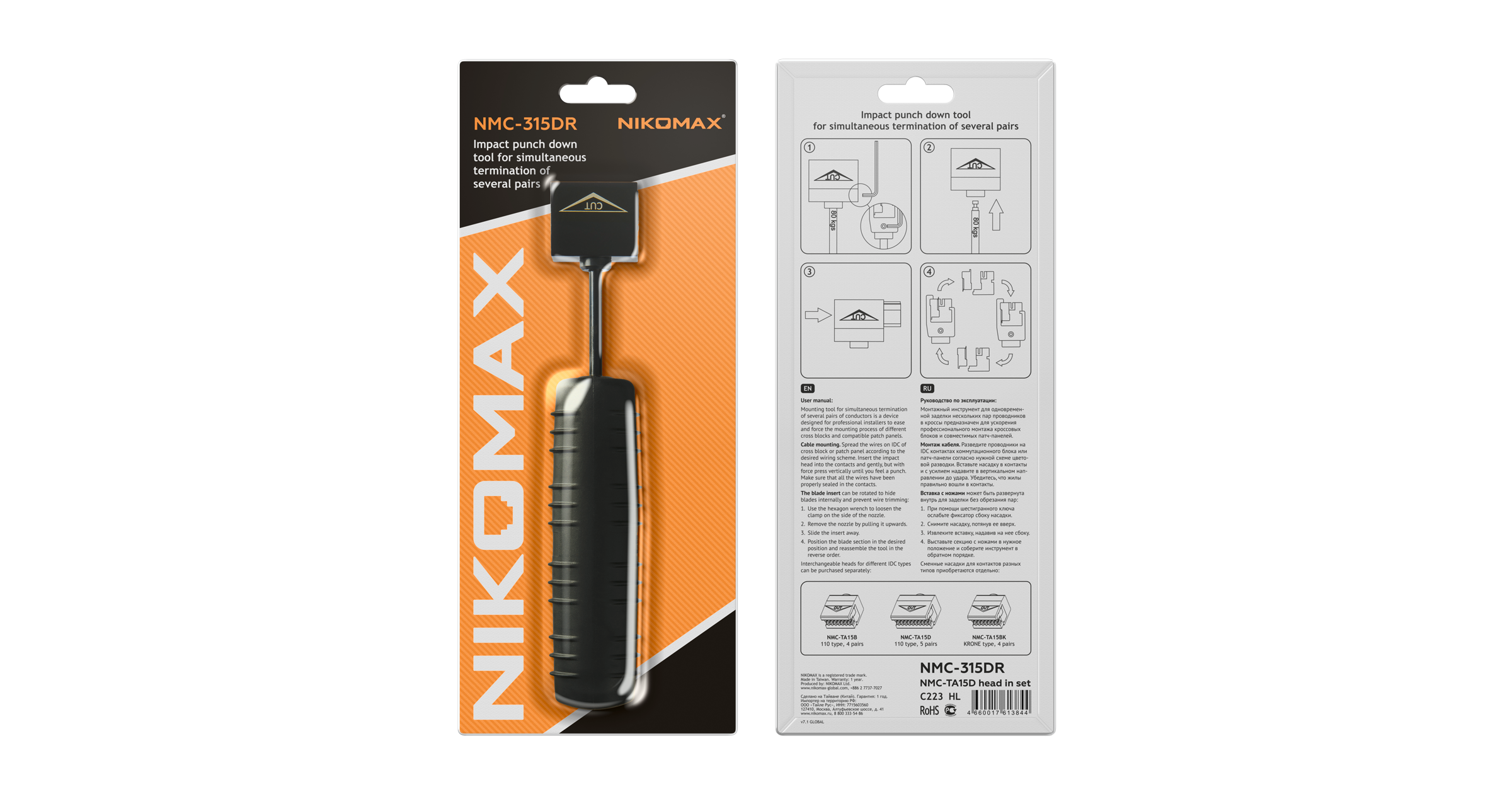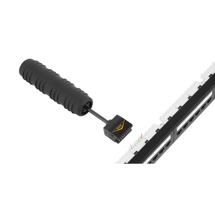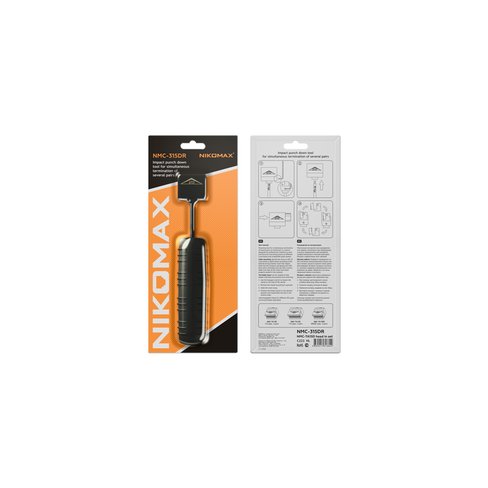 Монтажный инструмент NMC-315DR предназначен для одновременной заделки нескольких пар проводов в кроссы 110 типа. Инструмент представляет собой механическое устройство, предназначенное для механической фиксации жил проводов в контактах кроссового блока или коннектора. Инструмент снабжен съемными взаимозаменяемыми насадками и ударным механизмом. На насадках имеются ножи для обрезки излишков длин проводов после их фиксации в контактах. Вставка с ножами может быть выставлена в рабочую позицию, либо убрана ножами внутрь: для простой фиксации проводов, без их обрезки. NMC-315DR поставляется с насадкой на 5 пар, предназначенной для заделки многопарных кабелей в 110-е блоки. Для заделки четырехпарных кабелей удобнее использовать насадку NMC-TA15B на 4 пары (приобретается отдельно). Данная насадка не врезается лишний раз в соседние IDC контакты, продлевая их срок службы, что особенно актуально для коммутационных панелей.