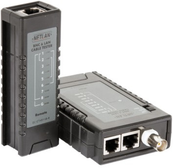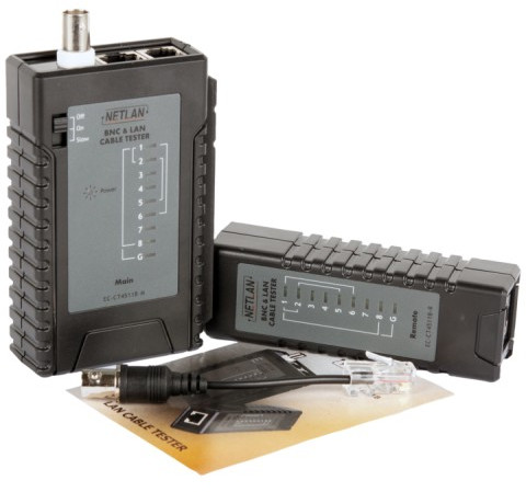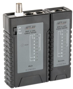 Кабельный тестер EC-CT4511B предназначен для работы с коаксиальными кабелями, оконцованными BNC разъемами, LAN кабелями с разъемами RJ45 и телефонными кабелями с разъёмами RJ11. Тестер способен диагностировать такие ошибки в линии как нарушение схемы разводки проводников, обрыв проводников и короткие замыкания.