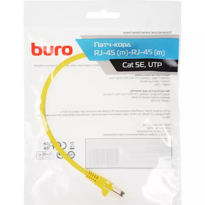 Описание BURO UTP 4 пары cat.5E CCA molded 0.25м