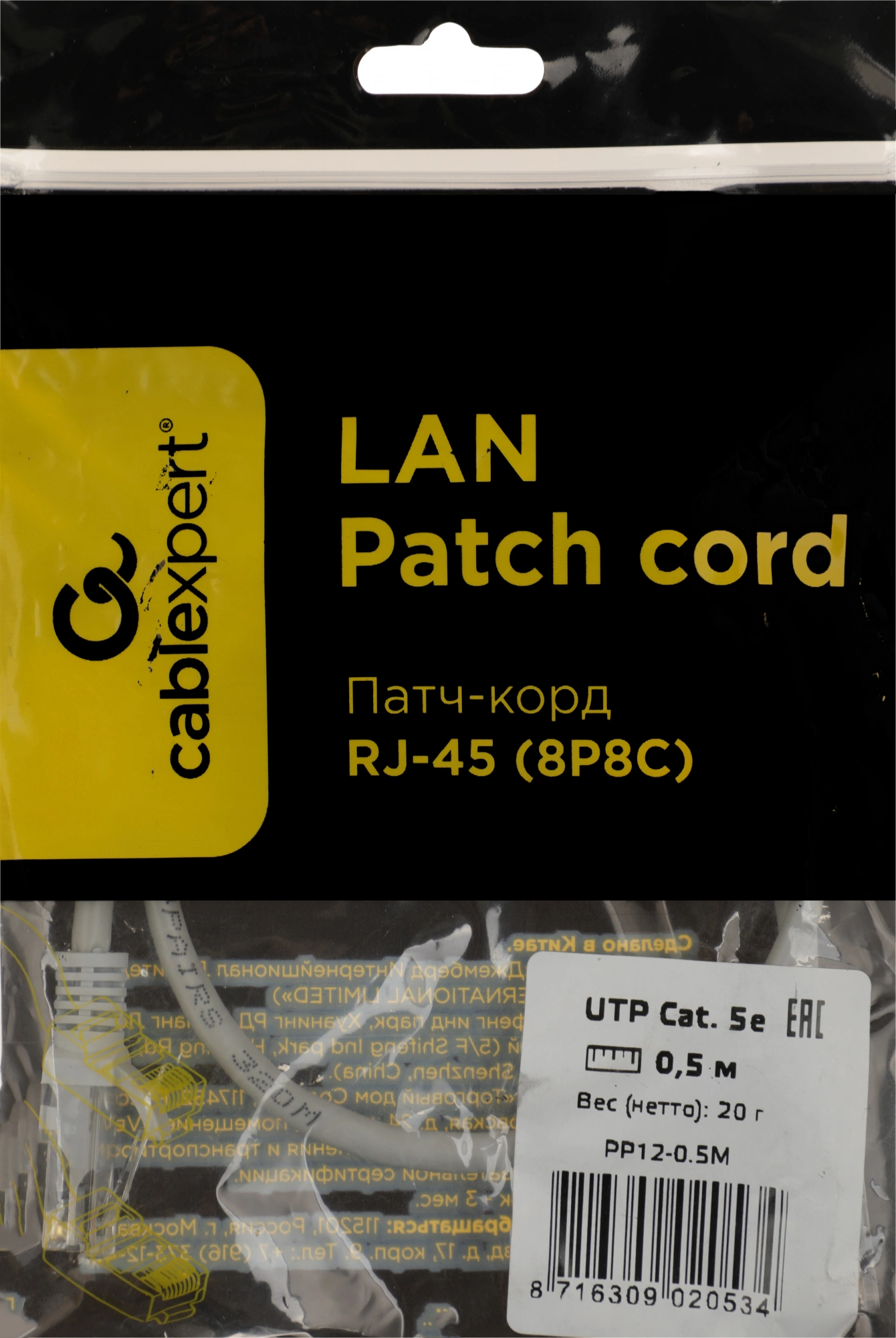 Описание Premier 1000Гбит/с UTP 4 пары cat.5E CCA molded 0.5м [PP12-0.5M]