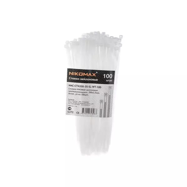 Стяжка нейлоновая Nikomax NMC-CTN200-35-SL-WT-100 неоткрывающаяся, 200х3,5мм, белая, уп-ка 100 шт