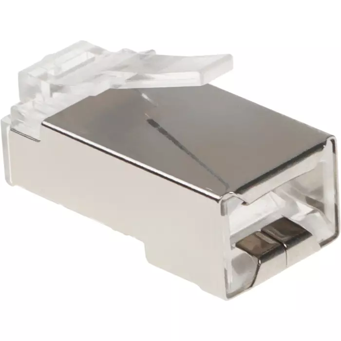 Коннектор Netlan EC-UP8P8C-SD-003-TR-1000 RJ45/8P8C под витую пару, Кат.5e (Класс D), 100МГц, покрытие 3мкд, универсальные ножи, для проводников 0,47-0,51мм, экранированный, уп-ка 1000шт.