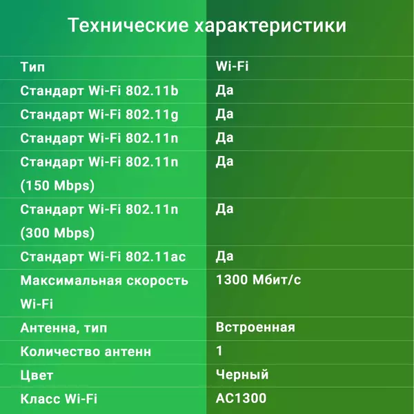 | Максимальная скорость Wi-Fi | 1300 Мбит/с |